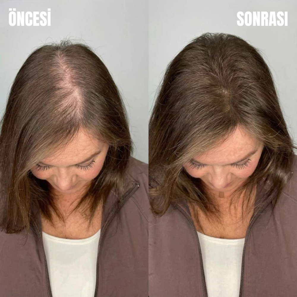 - Saç çizgisinde yoğunluğu ve hacmi artırarak daha dolgun bir görünüm sağlar.